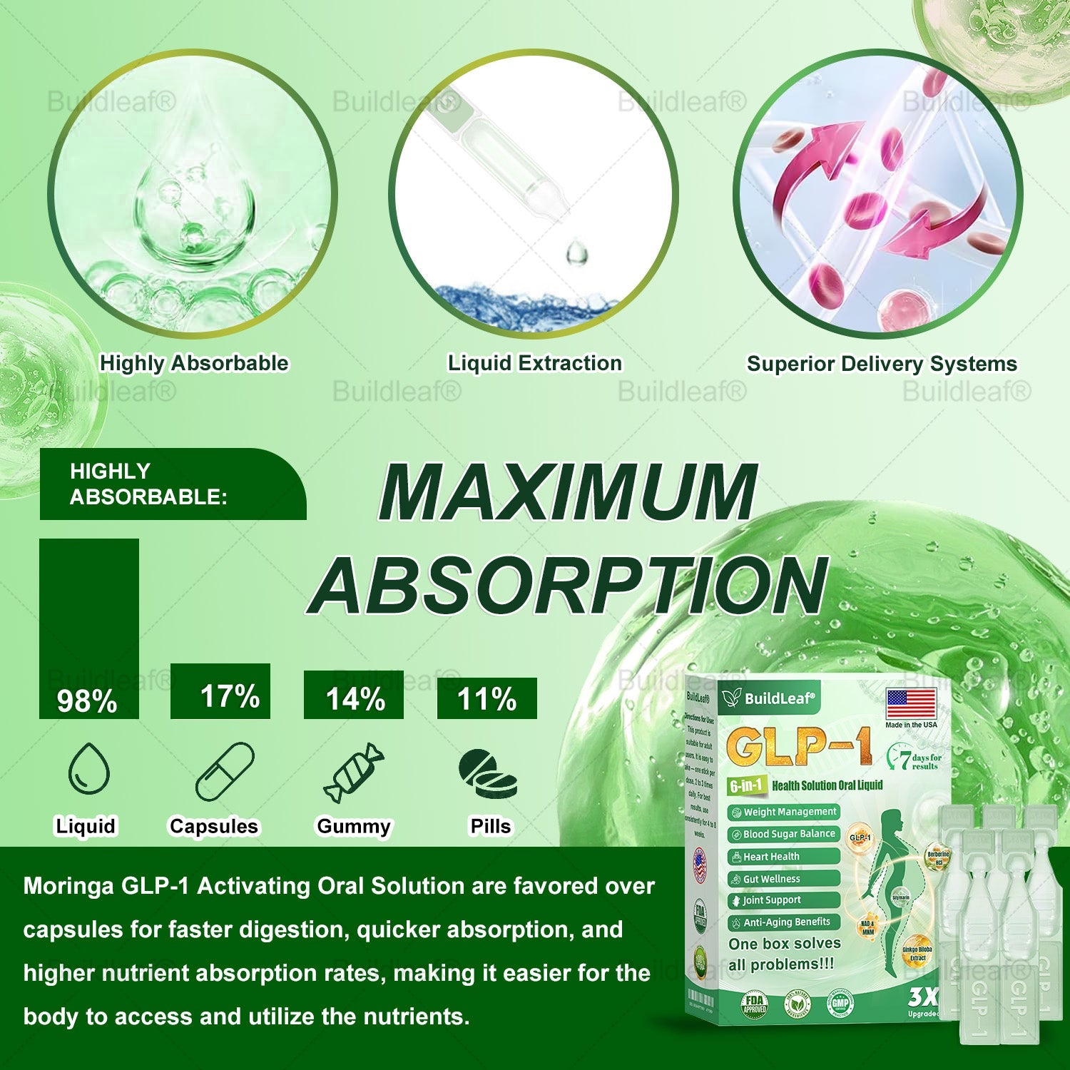 Meglutide, combined withย apple cider vinegarย and the powerfulย Moringa extract, helps the body utilize fat stores more effectively for energy. By improvingย insulin sensitivity, it accelerates fat burning, especially duringย calorie restrictionย or increasedย physical activity. The apple cider vinegar works to stabilizeย blood sugar levels, preventing excess glucose from being stored as fat.